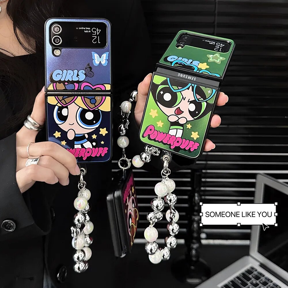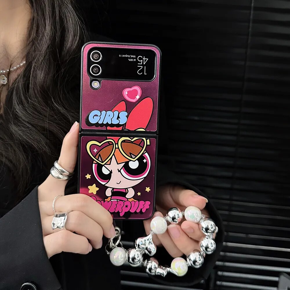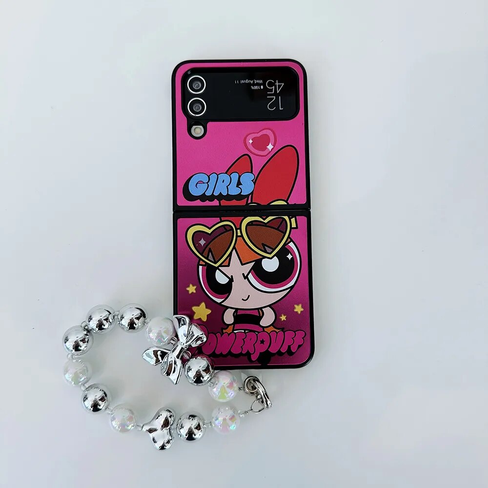 Cartoon Powerpuffs Girls with Bracelet Phone Case for Samsung Galaxy Z Flip Case