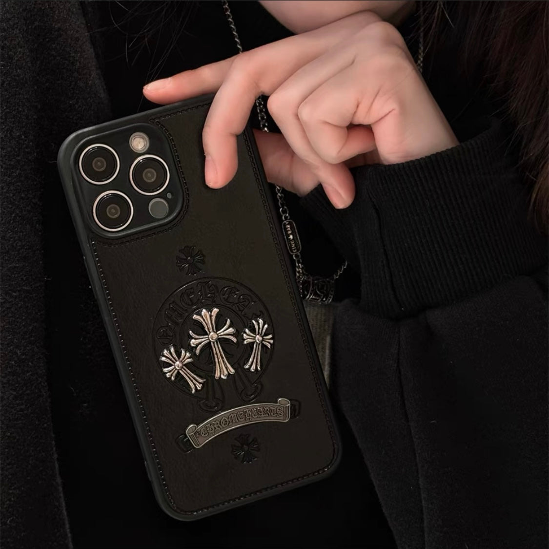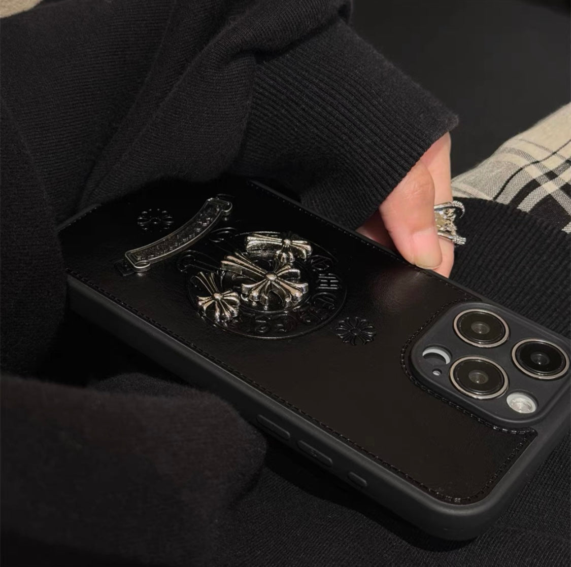 Luxury Gothic High Grade Black Leather iPhone case