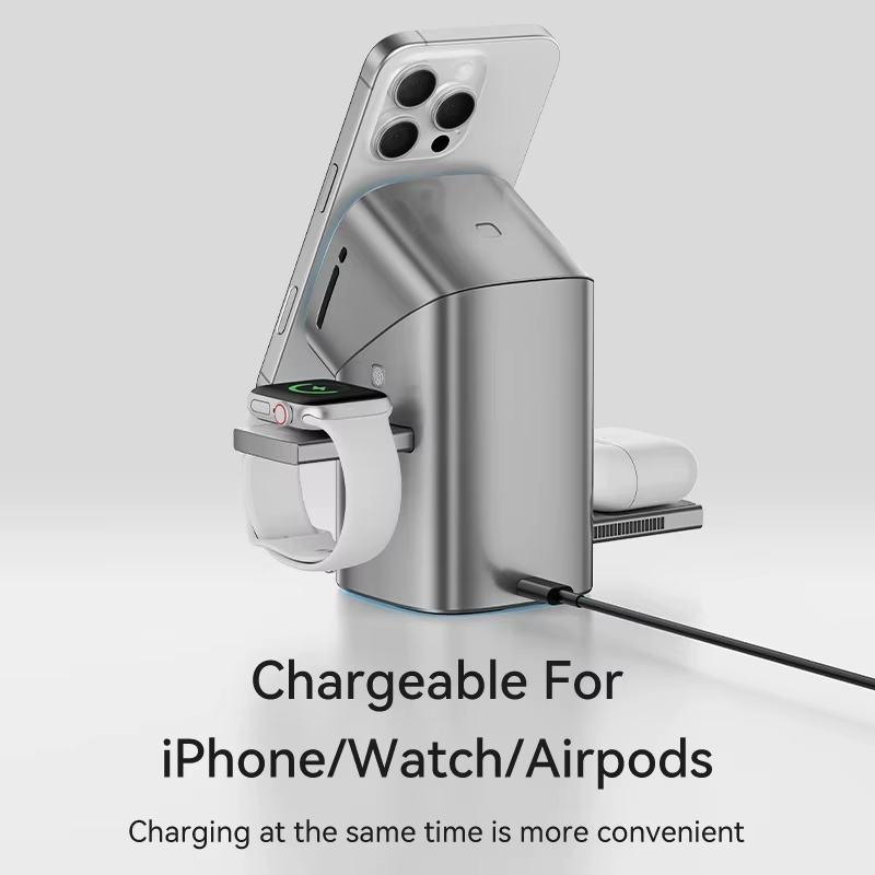 🔋 3-in-1 Charging: Power your iPhone, Watch, and AirPods in one sleek hub.