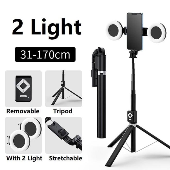 3-in-1 Selfie Stick Tripod with Dual Fill Lights – Extendable & Portable